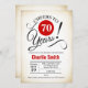 70th Birthday Party Invitation in Red White Black with retro creamy background. Cheers to 70 years! Can be personalized into any year.