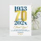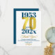 A modern and striking 70th birthday partyythank you card. This special milestone birthday card consists of birth and birthday date in blue typography - with the 70 highlighted in a gold effect font. Add a message for a custom party gift thank you.