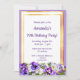 70th birthday party violet pansies flowers gold invitation