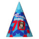 Bright star pattern add your own photo and name party hat. Ideal for a special boys 70th birthday party celebration. Colourful red and blue star pattern design. Background colour can also be changed for your own choice currently light blue. Original art and design by Sarah Trett. www.sarahtrett.com for www.mylittleeden.com