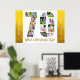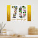 Personalized photo collage poster for a 70th birthday. The design features gold borders and up to 13 different photos which will be displayed in the shape of the number 70.. The template is set up ready for you to add your photos in a mixture of square, landscape and portrait pictures to you lots of options for placement. You can also add your name and year established or last name in the borders. The design is complete with the wording "what a wonderful lift" in script typography, which you can also customize if you wish.