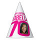 Bold add your own photo and name white with bright pink text party hat. Ideal for a special ladies 70th birthday party celebration. Other matching birthday items and colour options are available. Original graphic art and design by www.mylittleeden.com