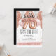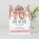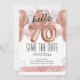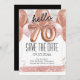 hello 70 birthday party save the date pink glitter balloons. Save the date rose gold number balloons with faux pink glitter. Girly, elegant, trendy. Easy to adjust template.