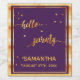 Elegant and modern for a 70th birthday party. Purple backdrop and faux gold text written with a trendy hand-lettered style script: hello seventy. With golden dots as decor. Templates for name and date, golden letters. You can change the background colour to match your theme. Click customize and then "select a background colour" on your right.