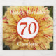 Celebrate a 70th milestone birthday milestone with personalized, self-adhesive sparkling wine bottle labels that feature the photo image of a stunning, red and yellow Dahlia flower along with the celebrant's name. Personalize your label by editing name and birthday age as desired.