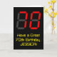 The front of this silly and nerdy birthday greeting card design features a large number "70" with a red seven segment digital display style appearance, along with the message "Have a Great 70th Birthday," and a custom name, on a black coloured background. The inside features a customized birthday greeting message, or could perhaps be cleared and left blank if a message is to be written by hand instead. A customizable birthday card like this might be a fun way to send birthday wishes to somebody who is celebrating their seventieth birthday. [~Z0000386]