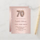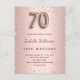 A modern, stylish and glamourous invitation for a 70th birthday party. A faux rose gold metallic looking background with pink diamonds. The name is written with a modern dark rose gold coloured hand lettered style script. Personalize and add your party details. Number 70 is written with a balloon style font, script.
