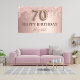 Elegant, classic, glamourous and girly for a 70th birthday party. Rose gold and blush pink, gradient background. Decorated with rose gold, pink faux glitter drips, paint dripping look. Personalize and add a name. With the text: Happy Birthday plus the birthday girls name. The text is written with a modern dark rose coloured hand lettered style script. Number 70 is written with a balloon style font.
