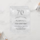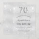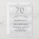A modern, stylish and glamourous invitation for a 70th birthday party. A faux silver looking background, decorated with glitter dust. Personalize and add your name nad party details. Number 70 is written with a balloon style font, script.