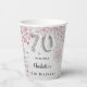 70th birthday silver pink glitter name paper cups