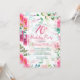 This tropical floral 70th birthday party invitation features gorgeous peonies and roses in shades of pink and purple with teal greenery behind an overlay of white with a cut out frame for your party details in pink and teal typography. A big "70th" in girly pink with sprinkles is the focal point. The back of the card has a matching floral pattern. Designed by artist Susan Coffey.