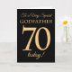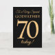 A chic 70th Birthday Card for a 'Very Special Godfather', with a number 70 composed of gold-effect numbers and the word 'Godfather', in gold-effect, on a black background. The inside message, which you can change if you wish, is 'Happy Birthday'