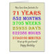 71e anniversaire carte comptant les années, jours, mois, heures et minutes. Une carte pour réfléchir ! Les années bissextiles ont été prises en compte !