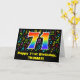This fun, exciting, and vibrant birthday greeting card design features a large number "71" having a rainbow spectrum gradient inspired pattern. It also features the message "Happy 71st Birthday,", and a customizable recipient name. The front also has a colourful music notes and symbols pattern. The inside features a customizable birthday greeting message, or could perhaps be cleared and left blank if a message is to be written by hand instead. A customizable birthday greeting card like this might be a fun way to send a birthday greeting message to a musician, a music composer, a singer, or somebody else who is celebrating their seventy-first birthday. [~Z0000426]