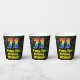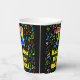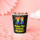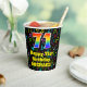This colourful and exciting music-themed birthday paper cup design features a large number “71” having a rainbow spectrum gradient inspired pattern. It also features the message “Happy 71st Birthday,”, and a personalized name. The background features an exciting and colourful pattern of various music notes and symbols having a variety of sizes and colours. Vibrant, colourful paper cups like this might be fun to use at a birthday party/celebration being held to honour somebody’s seventy first birthday. [~Z0000541]