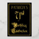 The front of this fancy and luxurious foil seventy-first birthday celebration/party invitation design features the message “71st Birthday Celebration” in elegant script-style text. It also has a customizable name. The background of the front is coloured black by default (although it can be customized to a different colour). The back features personalized details about the event, such as the date, time, location, and any other information that may be relevant. Opulent, ornate, customized invitations like these might be used to invite guests to a birthday party/celebration being held in celebration of somebody’s 71st birthday. [~Z0000589]