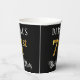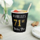 This ornate and elegant birthday paper cup design features an editable name and the message “71st Birthday Party”. The large number “71st” has a faux/imitation gold-inspired colouring pattern, the words “Birthday Party” are in luxurious script-style text, and the background is coloured black by default (although it can be customized). Luxurious, opulent paper cups like this might be used at a birthday party being held to honour somebody’s 71st birthday. [~Z0000567]