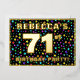 The front of this fun seventy-first birthday party/celebration foil invitation card design features a custom name, a large number “71st”, the message “BIRTHDAY PARTY!”, and a border. The background of the front features a joyful, colorful starfield pattern. The back features personalized details about the event, such as the date, time, location/venue, and any other useful information. Personalized invitations like these might be a fun way to invite guests/attendees to a birthday gathering being held to celebrate somebody’s 71st birthday. [~Z0000600]