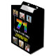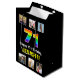 This bold and fun birthday-themed gift bag design features a large number “71“ having a multicolor rainbow spectrum inspired gradient pattern, plus the message “Happy 71st Birthday,“ and a customizable recipient name. The photos above and below the message can be personalized, perhaps with photos of the recipient, the recipient’s family and friends, and/or the sender(s) of the gift. A cheerful birthday themed gift bag like this might be used when giving a gift in celebration of somebody’s seventy-first birthday. (Photography © Storytree Studios, Stanford, CA.) [~Z0000669]