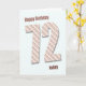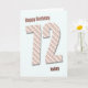 A very modern 72nd birthday card. This card is truly fabulous. Big letters in modern stripes on a blue background. Customize for your own unique message.