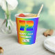 This exciting and joyful birthday-themed paper cup design features a large number “72” with a colourful rainbow spectrum inspired gradient pattern, along with the message “HAPPY 72nd BIRTHDAY,”, and a custom name. The background also features a cheerful multicolored rainbow spectrum inspired gradient pattern. Vibrant birthday themed paper cups like this might be used at a birthday party in celebration of somebody’s 72nd birthday. [~Z0000576]