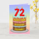 72nd Birthday — Fun Cake & Candles, w/ Custom Name Card