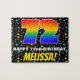 This exciting and fun birthday themed jigsaw puzzle design features a large number “72” having a multicolored rainbow spectrum inspired gradient pattern. It also features the message “HAPPY 72nd BIRTHDAY,”, and a personalized recipient name. The background has an eye-catching, multicolored pattern featuring star shapes of various sizes. An upbeat, editable birthday puzzle like this might be a fun way to deliver birthday greetings to somebody who is celebrating their seventy-second birthday. [~Z0000607]