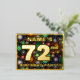 The front of this vibrant seventy-second birthday celebration foil invitation postcard design features an editable name, a large number “72nd”, the message “BIRTHDAY PARTY!”, and a border. The background of the front has an eye-catching, colourful bursting celebratory fireworks-inspired pattern. The back features personalized details about the event, such as the date, time, place/venue, and any other information that may be useful. Customizable invitations like these might be a fun way to invite guests to a birthday gathering being held to honour somebody’s 72nd birthday. [~Z0000609]