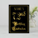 The front of this luxurious, elegant, foil seventy-second birthday celebration invitation design features the message “72nd Birthday Celebration” in fancy script-style text. It also features a personalized name. The background of the front is coloured black by default (although it can be customized to a different colour). The back features personalized details about the event, such as the date, time, location, and any other relevant information. Fancy, ornate, editable invitations like these might be used to invite guests to a birthday party/celebration being held to celebrate somebody’s seventy-second birthday. [~Z0000589]