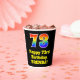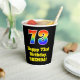This exciting and fun birthday paper cup design features a large number “73” having a rainbow spectrum gradient inspired pattern. It also features the message “Happy 73rd Birthday,”, and an editable name. It also has a black-coloured background. Colourful, vibrant paper cups like this might be fun to use at a birthday party/celebration being held in celebration of somebody’s seventy third birthday. [~Z0000537]