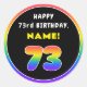 73rd Birthday: Colourful Rainbow # 73, Custom Name Classic Round Sticker