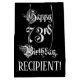 This formal and opulent birthday gift bag design features the message “Happy 73rd Birthday,” in fancy script style text, on a black coloured background. It also features a customizable recipient name. An elaborate gift bag like this might be used when wrapping presents being given to somebody in celebration of their seventy-third birthday. [~Z0000557]