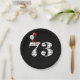 Red, white and black party balloon bouquet on black background for 73rd birthday.