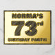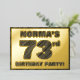 The front of this bold seventy-third birthday party/celebration foil invitation card features an editable name, a large number “73rd”, the message “BIRTHDAY PARTY!”, and a border, all featuring a rustic, yet sophisticated, faux wood grain look inspired pattern. The back features personalized details about the event, such as the date, time, location/venue, and any other relevant information. Customizable invitations like these might be used to invite attendees to a birthday gathering being held to celebrate somebody’s 73rd birthday. [~Z0000595]