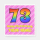 This happy and festive 73rd birthday-themed paper napkin design features a large number "73" having a colourful pattern inspired by the appearance of a rainbow spectrum. It also features the message "Happy 73rd Birthday,", and a personalized name. The background features a pattern of dark pink and light pink stripes containing loving pink heart shapes. Birthday themed paper napkins like this might be used when celebrating somebody’s seventy third birthday. [~Z0000417]