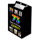 This fun and bold birthday gift bag design features a large number “73“ having a multicolor rainbow spectrum inspired gradient pattern, plus the message “Happy 73rd Birthday,“ and a personalized recipient name. Above and below the message are some photos that can be personalized, perhaps with photos of the recipient, the recipient’s family and friends, and/or the sender(s) of the gift. A gift bag like this might be a fun way of wrapping a birthday gift being given to somebody who is celebrating their seventy-third birthday. (Photography © Storytree Studios, Stanford, CA.) [~Z0000669]