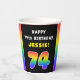 74th Birthday: Colourful Rainbow # 74, Custom Name Paper Cups