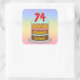 74th Birthday: Fun Cake and Candles + Custom Name Square Sticker