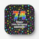 74th Birthday: Fun Stars Pattern and Rainbow “74” Paper Plate