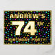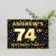 The front of this eye-catching seventy-fourth birthday celebration/party foil invitation card design features an editable name, a large number “74th”, the message “BIRTHDAY PARTY!”, and a border. The background of the front features a fun, multicolored star shapes pattern. The back features personalized details about the event, such as the date, time, location, and any other information that may be important. Personalized invitations like these might be a fun way to invite attendees/guests to a birthday gathering/party being held to celebrate somebody’s 74th birthday. [~Z0000600]