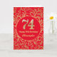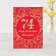 74th Birthday Red and Gold Floral Pattern Card