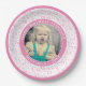 75 Your Photo Random Number Pattern Pink/White Paper Plate