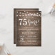 Invitation du 75e anniversaire du Mariage. Arrière - plan rustique en bois. Éclairage à cordes. 1ère, 2ème, 3ème, 4ème, 5ème, 10ème, 15ème, 20ème, 25ème, 30ème, 35ème, 40ème, 45ème, 50ème, 55ème, 60ème, 65ème, 70ème, 75ème, 80ème, n'importe quelle année. Anniversaire adulte. Fête d'anniversaire d'une femme ou d'un homme. Pour plus de personnalisation, cliquez sur le bouton "Customiser" et utilisez notre outil de conception pour modifier ce modèle.