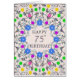 75th Birthday card. A glorious abstract pattern with flowers and diamonds. A very pretty, feminine, and stylish way to say 'Happy Birthday'. An unusual design that stands out. Send your birthday wishes in an elegant and eloquent way. All the diamonds on this card are printed.