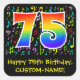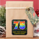 This fun, vibrant, and colourful birthday themed sticker design features a large number "75" with a rainbow spectrum gradient inspired pattern, along with the message "Happy 75th Birthday,", and a custom name. Part of the background features a colourful music notes and symbols pattern. Birthday-themed stickers like this might be fun to use as a birthday party decoration, or perhaps give as a birthday gift, or perhaps be used when wrapping birthday presents being given in celebration of a song composer’s, a singer’s, a musician’s, or somebody else’s 75th birthday. [~Z0000423]