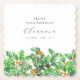 Perfect table decor for a December birthday party. Holly is the birth flower for that month. It forms a pretty watercolor bottom border on this festive personalized paper square coaster. The birthday celebrant's name, age and birthdate are placed above it using elegant calligraphy and typography. All text is editable.
