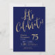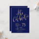 Cette fabuleuse invitation de 75e anniversaire de bleu marine pour hommes qui dit "Fêtons !" dans une police d'écriture moderne en or serait parfaite pour célébrer l'homme à l'75e anniversaire de votre vie. Cette invitation est tendance, design, moderne et contemporaine. Pour voir vos invitations personnalisées sélectionnez "Personnaliser ce modèle" et entrez vos informations. C'est super facile !