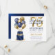 This fabulous men's 75th birthday party Save the Date card featuring a 2-layer navy blue and gold cake with navy blue and gold balloons, the number 75 in gold would be perfect for asking people to put this special date aside for the upcoming 75th Birthday Party. It is traditional and classic while being fresh, modern and contemporary. The back is a coordinating navy blue foil.