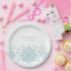 75th Birthday Party Blue White Snowflake Custom Paper Plate