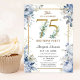 75th Birthday Party Elegant Dusty Blue Floral Invitation